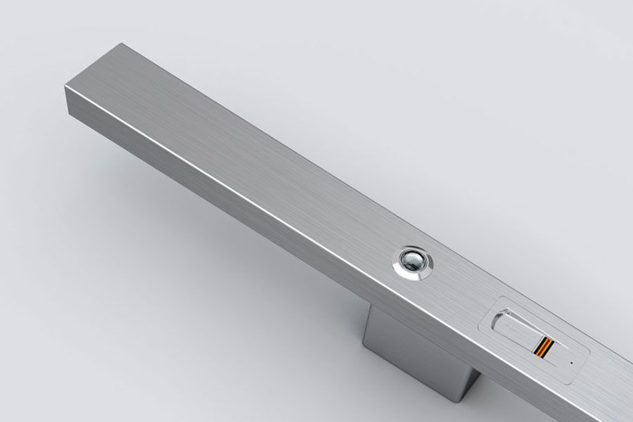 Mit seiner eleganten Edelstahl-Fingerführung wurde der ekey arte speziell für den flächenbündigen Einbau in Designtüren konstruiert.