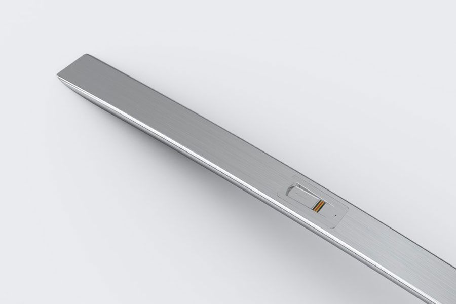 Mit seiner eleganten Edelstahl-Fingerführung wurde der ekey arte speziell für den flächenbündigen Einbau in Designtüren konstruiert.