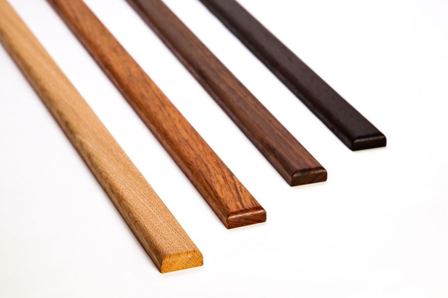 In unserem Programm können Sie ohne Aufpreis aus vier Holzarten wählen. Sie mögen es klassisch? Dann ist Eiche das Richtige. Etwas exklusiver ist sicherlich Nussbaum, eine Holzsorte, die hierzulande selten geworden ist. Von weiter her stammen das afrikanische Edelholz Wenge oder die Holzart Jatobá, die ursprünglich in Südamerika beheimatet und auch als brasilianische Kirsche bekannt ist. Einen Eindruck von den verschiedenen Holzsorten erhalten Sie in unserem Katalog. Fragen zu den Eigenschaften beantworten wir Ihnen gerne.
